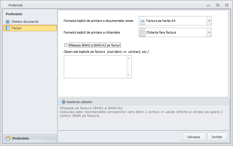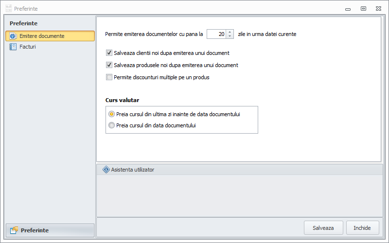 PreferinteAplicatia permite utilizatorilor sa seteze o serie de preferinte pentru atat emiterea documentelor cat si pentru afisarea documentelor.