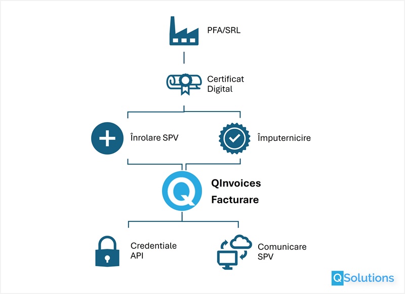 - Înregistrarea în SPV: Firma (SRL, PFA, II, etc.) trebuie înrolată în SPV pe baza certificatului digital.